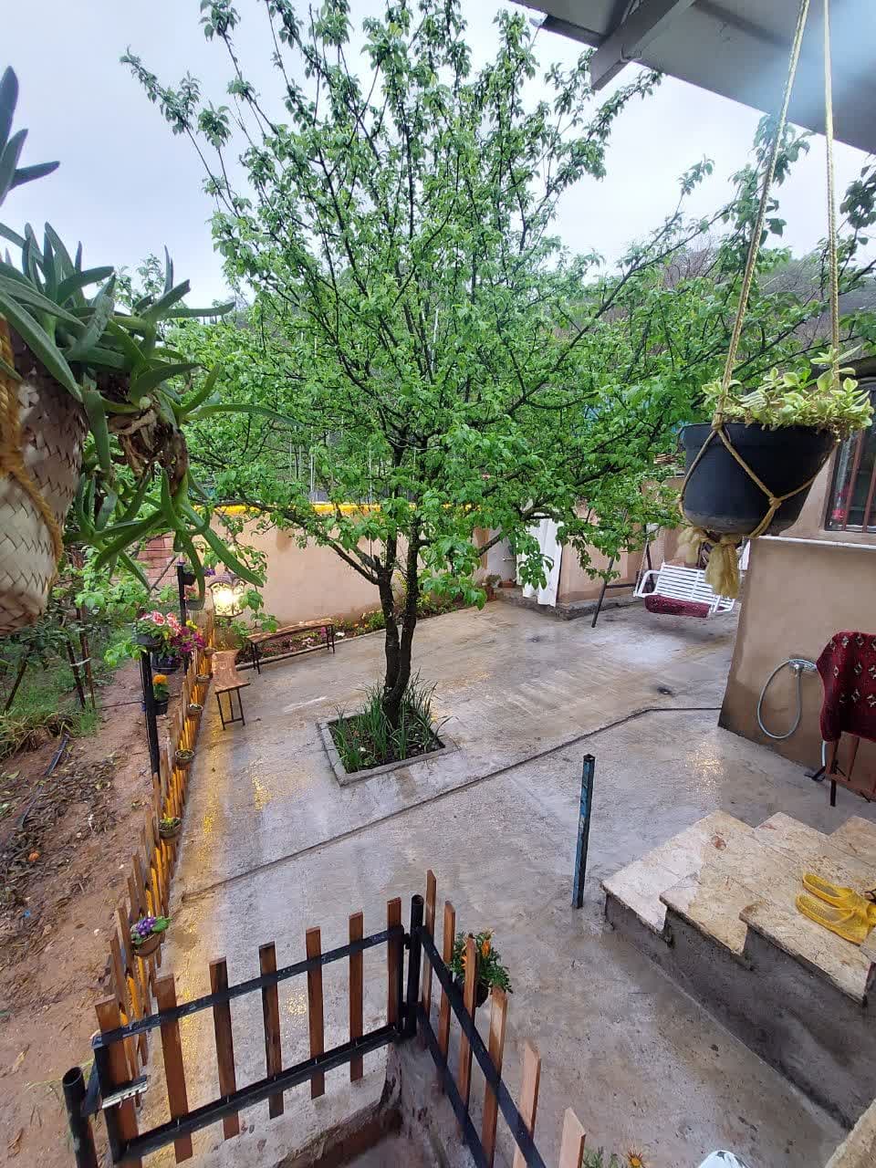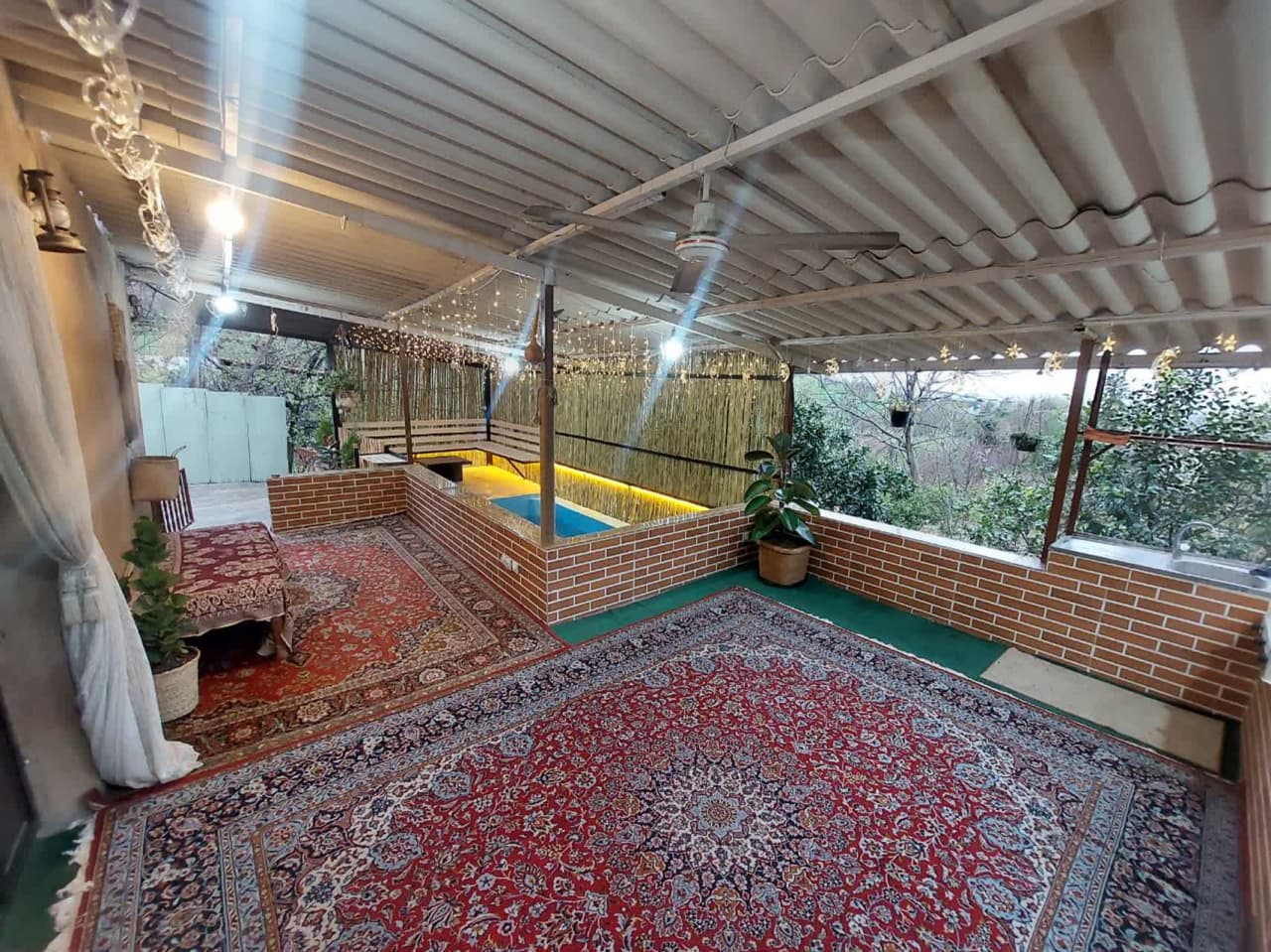 فضای داخلی ویلا: دارای یک هال و آشپزخانه و کمد و یک تراس با ویو باغ و کوه